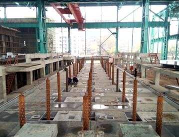 臺車式退火爐鋼 結構主要包括爐殼支撐框架和驅動設備支撐框架(平臺鋼結構)??紤]到爐殼潛在的熱脹冷縮...